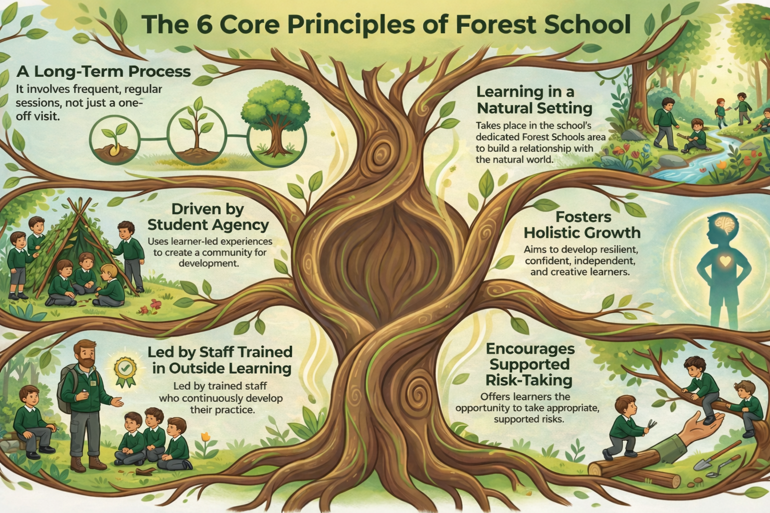 Forest School sessions are led by staff trained in Outdoor Learning, who continually develop their practice to ensure children experience high-quality, safe and inspiring sessions.