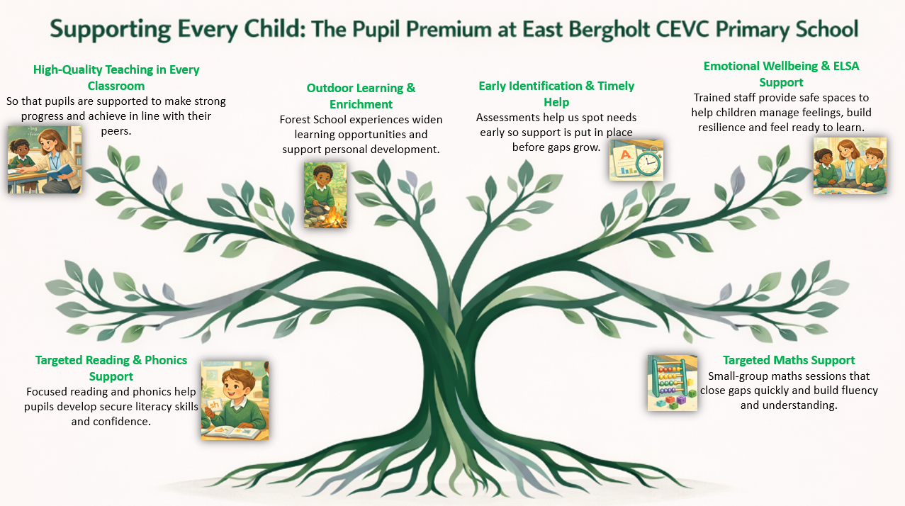 The statement below presents an overview of East Bergholt CEVC Primary Schools’ pupil premium strategy, and demonstrates that the schools use of the funding meets the requirements of the conditions of the grant.